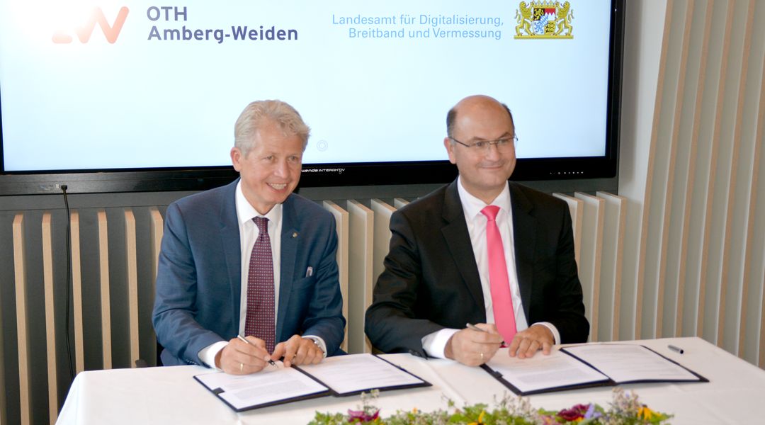 Die Bayerische Vermessungsverwaltung und die Ostbayerische Technische Hochschule (OTH) Amberg-Weiden arbeiten seit vielen Jahren auf dem Gebiet der Vermessung und Geoinformation zusammen, insbesondere beim Studiengang "Geoinformatik und Landmanagement", der zum Wintersemester 2018/19 startete. Der Studiengang umfasst so innovative Zukunftsfelder wie z. B. Satellitengeodäsie, 3D-Laserscanning und moderne digitale Luftbildauswertung.