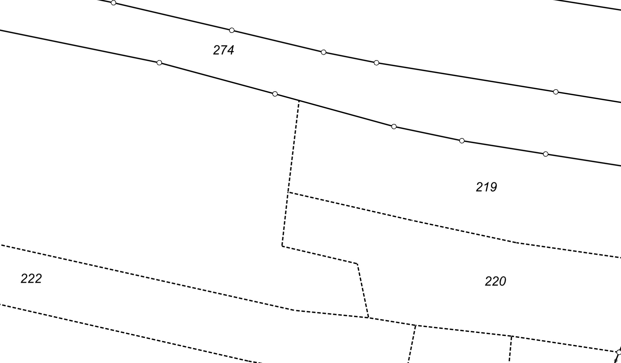 Grenzen, welche nicht zentimetergenau vermessen sind, werden im Kataster gestrichelt dargestellt.